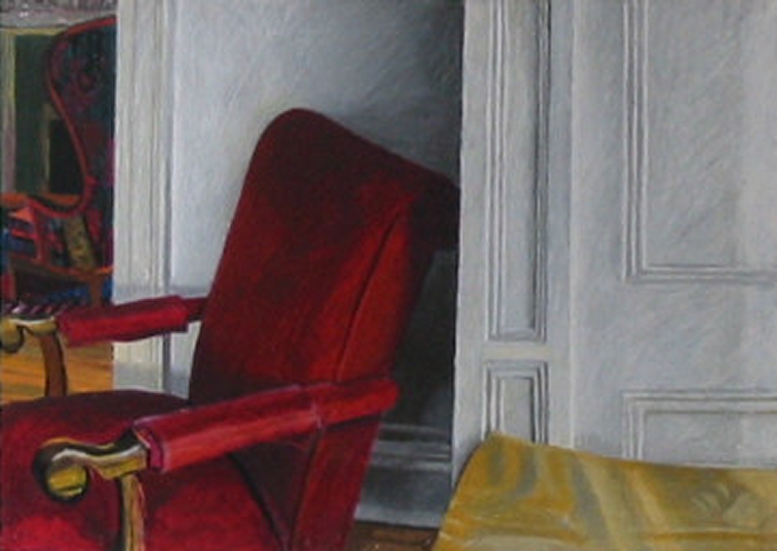 Many drawings in this show are chair portraits. Like a portrait of a person, these drawings are intended to capture the character and story of a chair.